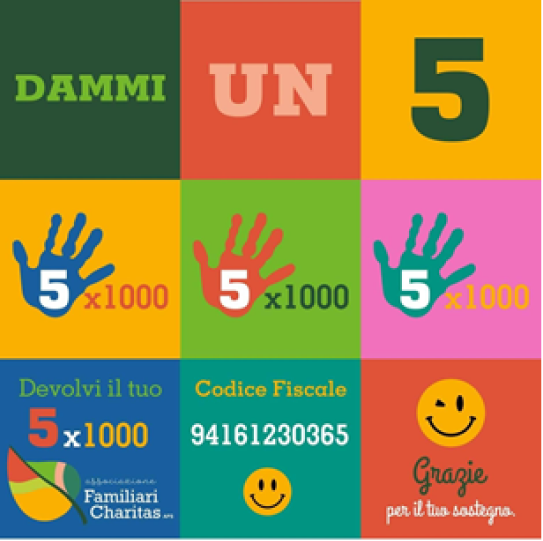 Devolvi il tuo 5×1000 della tua dichiarazione dei redditi all’Associazione Familiari Charitas APS, basta inserire nel Modello 730 o Unico il Codice Fiscale 94161230365